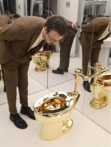 One of the two golden toilets made by Cattelan in 2016 was previously displayed at the Guggenheim Museum.